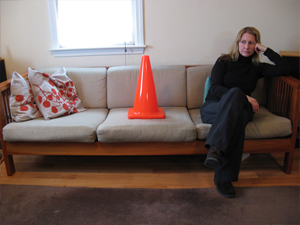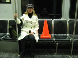 A winter performance and digital mapping project, in which an orange traffic cone was used to illegally reserve 'parking' spaces all over town. A performance / photography / digital maps mashup; viewers were invited to add their space-savers to the online map.