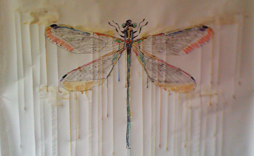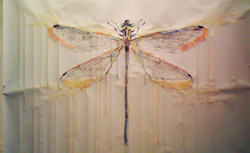 Dragonfly, 5' x 8', watercolor and charcoal on paper, detail
