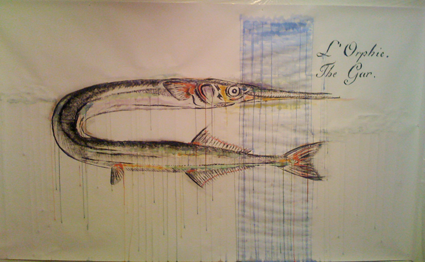 Fish 2, 8' x 4', watercolor and charcoal on paper