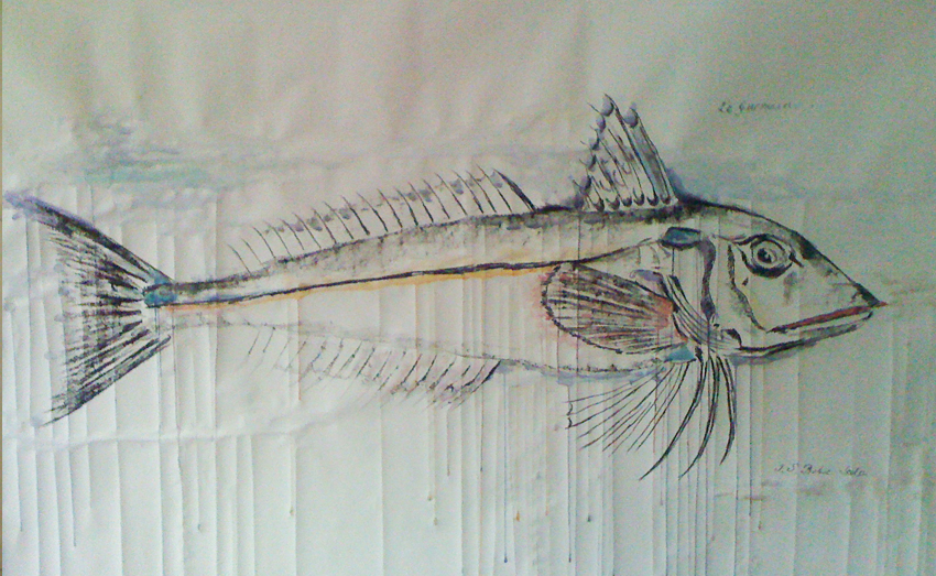 Fish 1, 8' x 4', watercolor and charcoal on paper